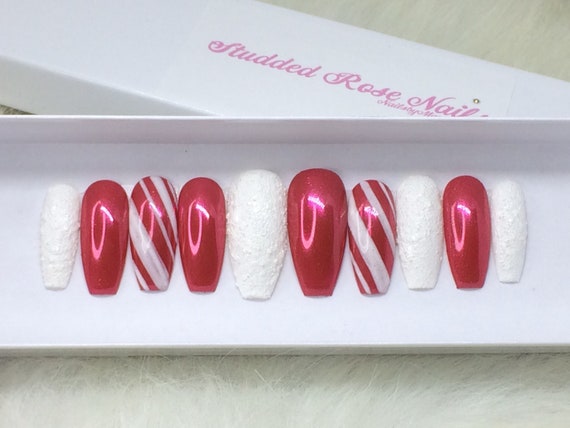 Christmas Nails Coffin Shape Candy Cane - These red stiletto nails are so bold and shiny, they make rudolph jealous. Posted by gurias Saturday, January 16, 2021